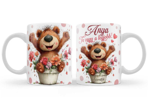 Vidám Anyák Napi Ajándék – „Anya, Te vagy a legjobb!” Macis Bögre