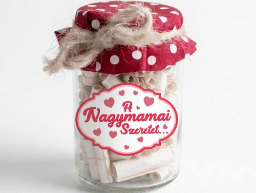 A nagymamák szeretete semmihez sem fogható: türelmes, gondoskodó és végtelen. Ha idén egy olyan anyák napi ajándékot keresel, amely méltó módon fejezi ki ezt az érzést, a "A Nagymamai Szeretet..." kívánság befőtt a tökéletes választás. Ez a 24 napra elegendő kedvesség minden nap emlékezteti őt arra, mennyire fontos helyet foglal el a család szívében.