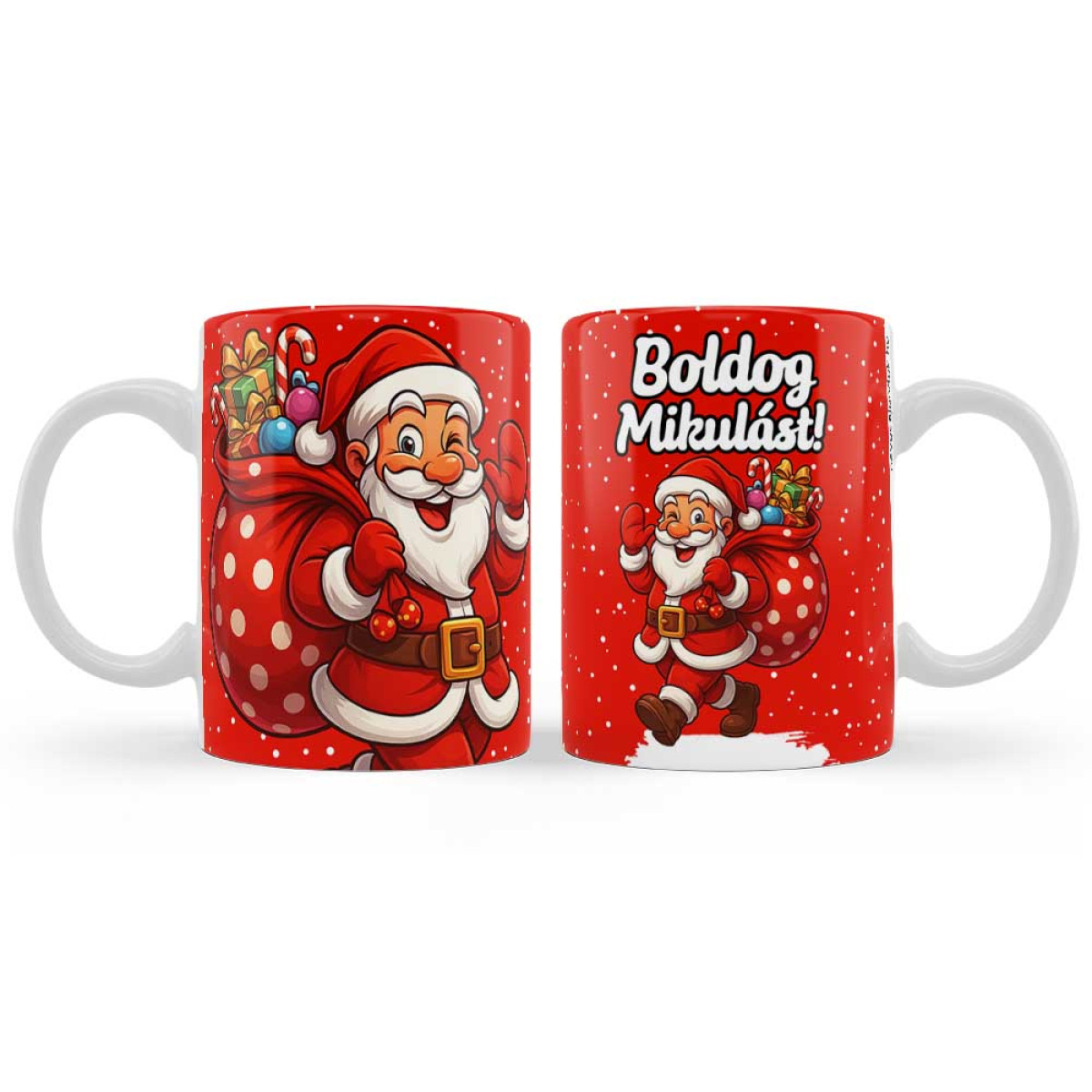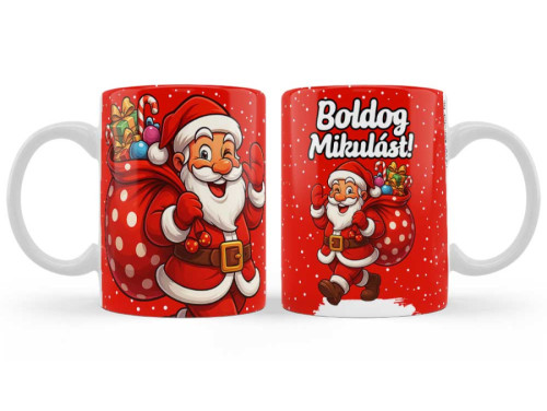(B1357) Karácsonyi Bögre 3 dl - Boldog Mikulást Bögre - Mikulás Bögre - Karácsonyi Ajándék