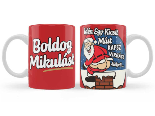 (B1358) Karácsonyi Bögre 3 dl - Boldog Mikulást Bögre - Idén Egy Kicsit Mást Kapsz - Mikulás Bögre - Karácsonyi Ajándék