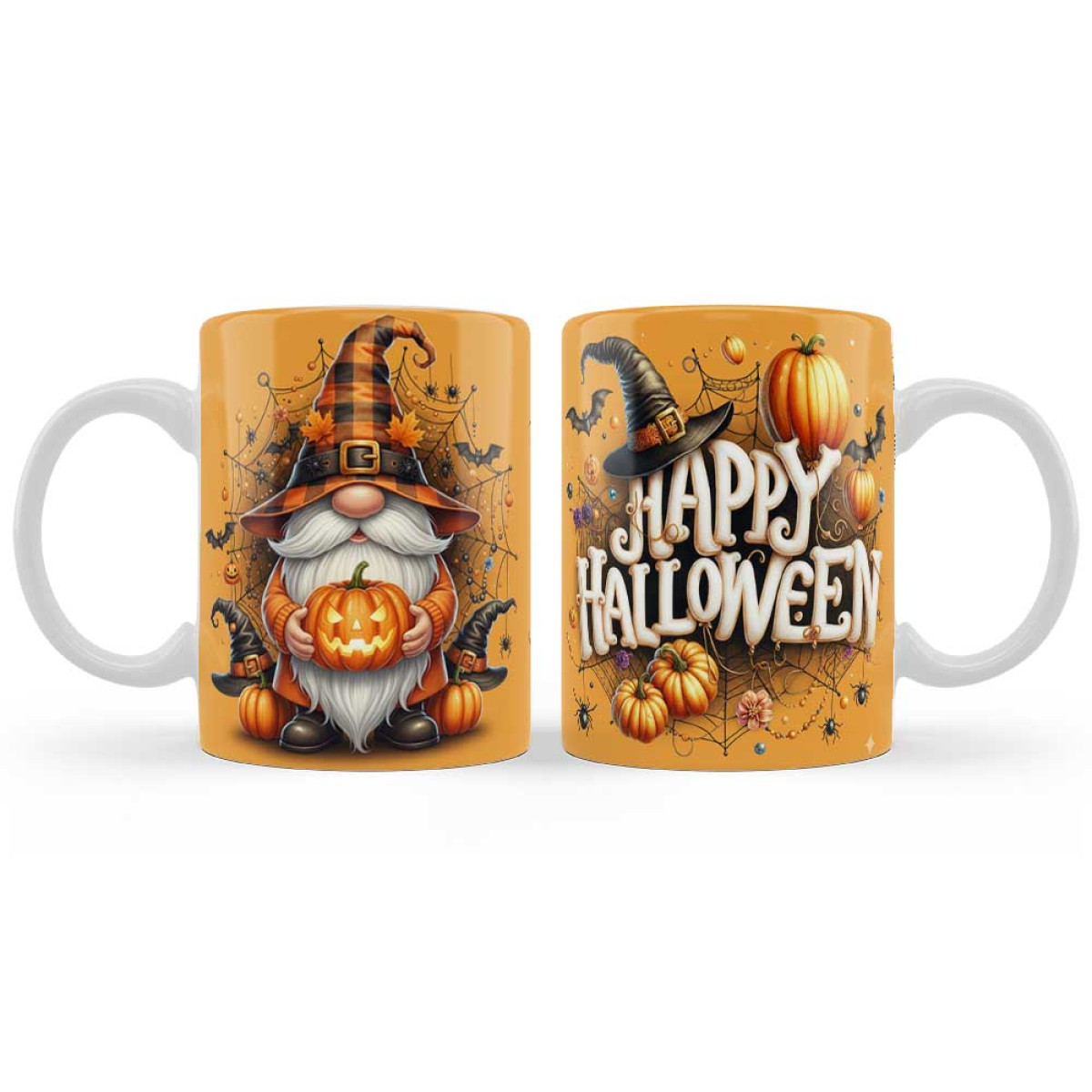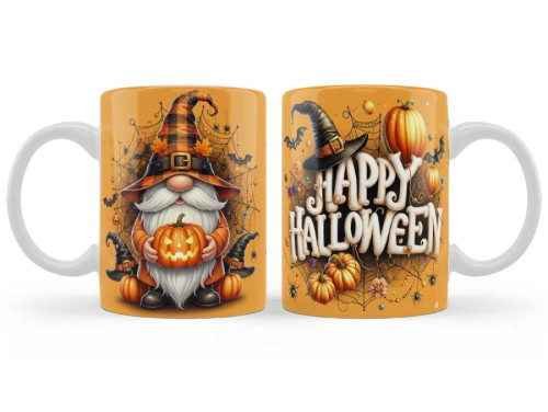 Készülj a Halloween varázslatos hangulatára ezzel a vidám Halloween bögrével, amelyet sütőtök, boszorkánykalap, pókhálók és egy aranyos manó díszít. A narancssárga őszi design igazi kiegészítője minden Halloween dekorációnak, legyen szó házibuliról, irodai összejövetelről vagy egy hangulatos őszi estéről.