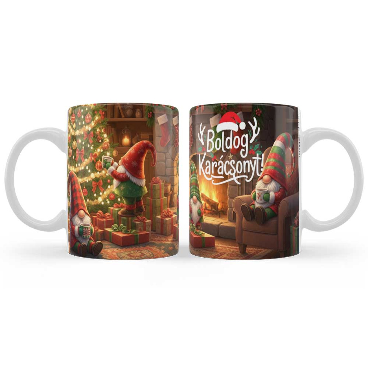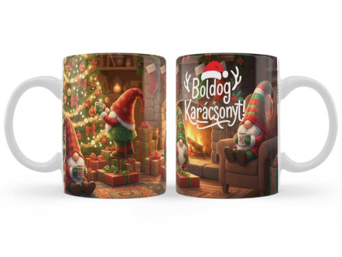 (B1368) Karácsonyi Bögre 3 dl - Boldog Karácsonyt feliratú Gnome Manók Karácsonya Bögre - Karácsonyi Ajándék