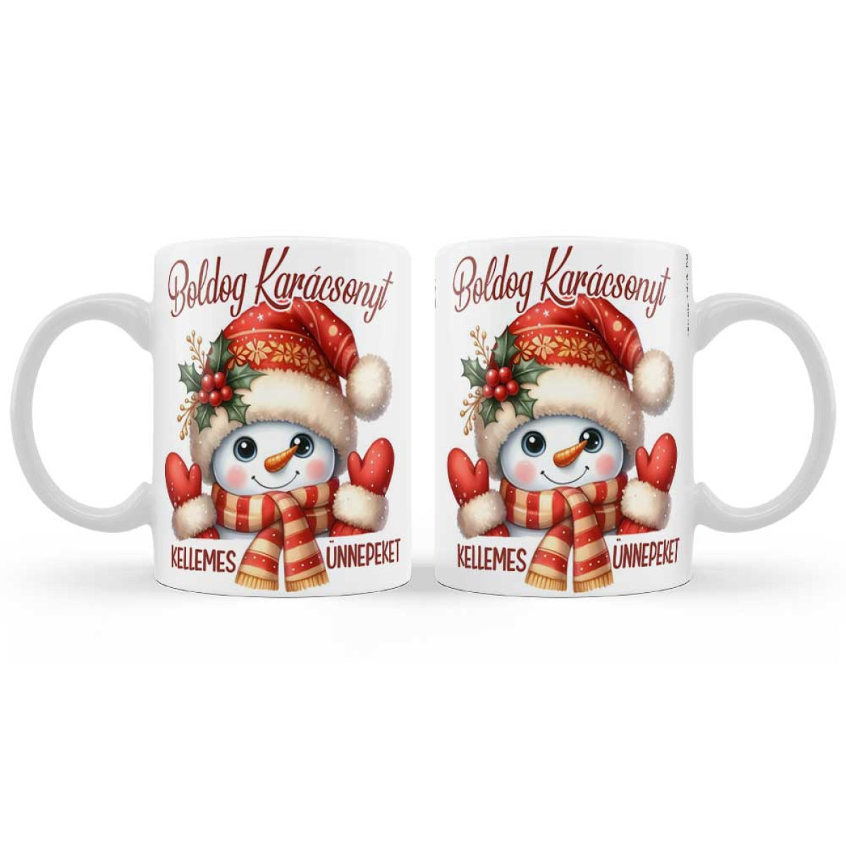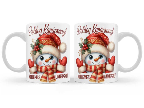 Ez a karácsonyi bögre garantáltan mosolyt csal az arcokra! A kétoldalas mintán egy bájos, piros sapkás hóember látható ünnepi díszítésben, „Boldog Karácsonyt” és „Kellemes Ünnepeket” felirattal. Tökéletes ajándék kollégáknak, családtagoknak vagy akár saját magadnak is a téli napokra.