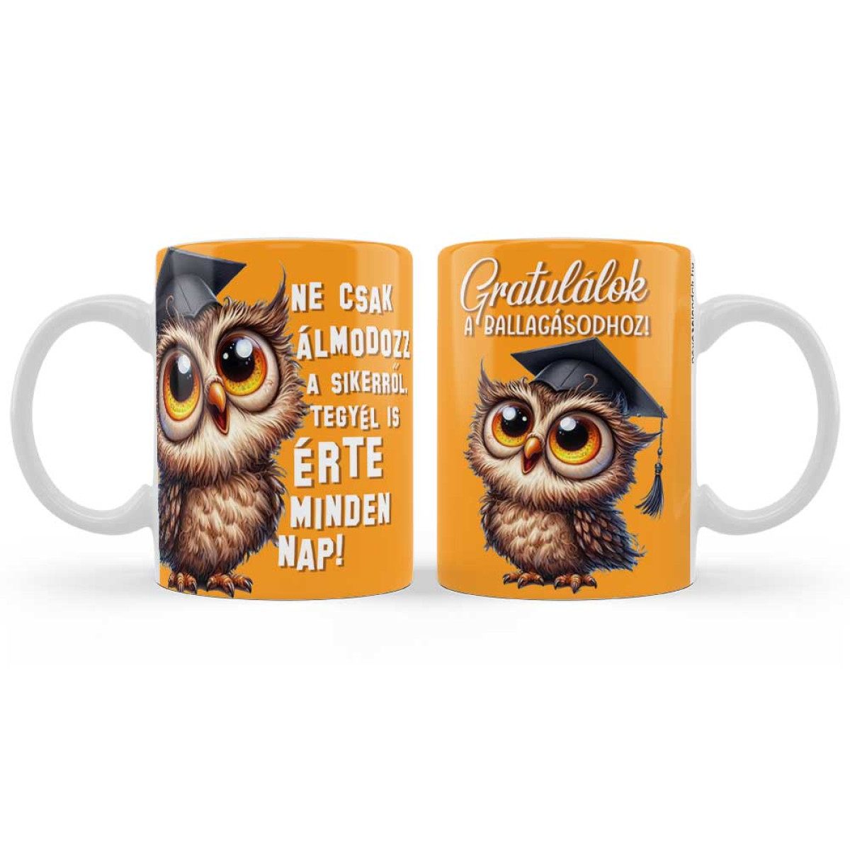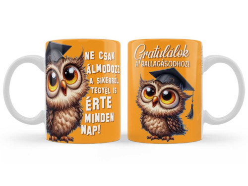 A siker nem a véletlen műve, hanem a mindennapi munka gyümölcse. Ez a ballagási bögre azoknak a fiataloknak készült, akik készek tenni az álmaikért. A bögre egyik oldalán látható határozott, mégis kedves bagoly figura és az erőteljes üzenet tökéletes útravaló a nagybetűs élet küszöbén állóknak.