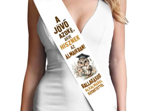 A ballagás az álmok beteljesülésének és az új célok kitűzésének ünnepe. Ez a prémium ballagási vállszalag nem csupán egy kiegészítő, hanem egy életre szóló, bátorító üzenet a ballagó diák számára. A vidám, baglyos grafika és az ikonikus idézet tökéletes választás a nagy napra.