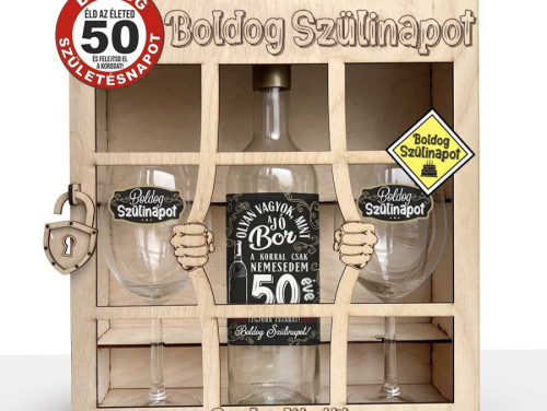 Ha egy igazán ütős, maradandó és garantáltan mosolyt csaló ajándékot keresel 50. születésnapra, akkor ez a börtön formájú boros szett egyszerűen telitalálat! A humoros "rácsos" kialakítás már első pillantásra leveszi a lábáról az ünnepeltet, a benne lévő díszüveg pedig stílusos felirattal teszi teljessé az élményt: