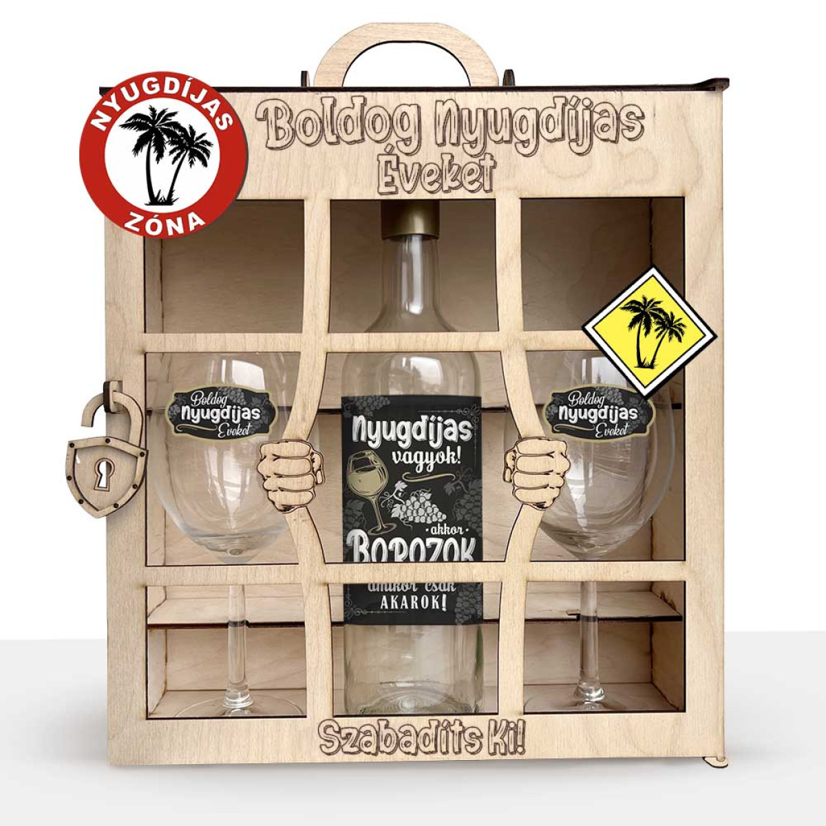 Börtönös Boros Italos Szett - Boldog Nyugdíjas Éveket - Nyugdíjas Búcsúztatóra Boros Ajándékszett