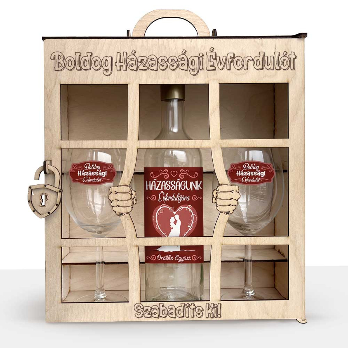 Boldog Házassági Évfordulót – Fa Börtön Formájú Boros Ajándékdoboz Pároknak