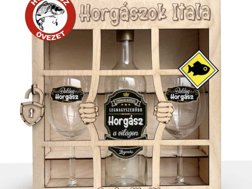 Horgászok Itala – Egyedi Boros Italos Szett Börtön Díszdobozban