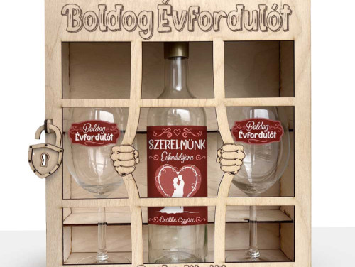 - 1 db 0,75 l díszüveg évfordulós cimkével („Szerelmünk évfordulójára”)