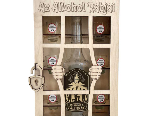 Ha a pálinka nemcsak ital, hanem életérzés, akkor ez a szett kötelező darab! Az „Az Alkohol Rabjai” börtönös italos szett egy fából készült díszdobozban érkezik, amelyben 0,5 literes üveg és 6 feles pohár kapott helyet. A humoros „Imádom a pálinkát!” feliratú üveg garantáltan feldobja a hangulatot minden buliban, születésnapon vagy férfias összejövetelen.