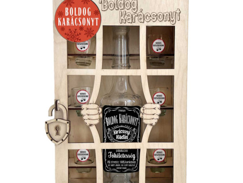 Ha egy vicces, mégis különleges karácsonyi ajándékot keresel, a Boldog Karácsonyt – Börtönös Italos Szett tökéletes választás! Ez az egyedi, fából készült börtön dizájn egy 0,5 literes pálinkás üveget és 6 feles poharat rejt, ünnepi mintákkal és humoros feliratokkal: „Stresszmentes, 100% karácsonyi kiadás” – garantáltan feldobja az ünnepi hangulatot!