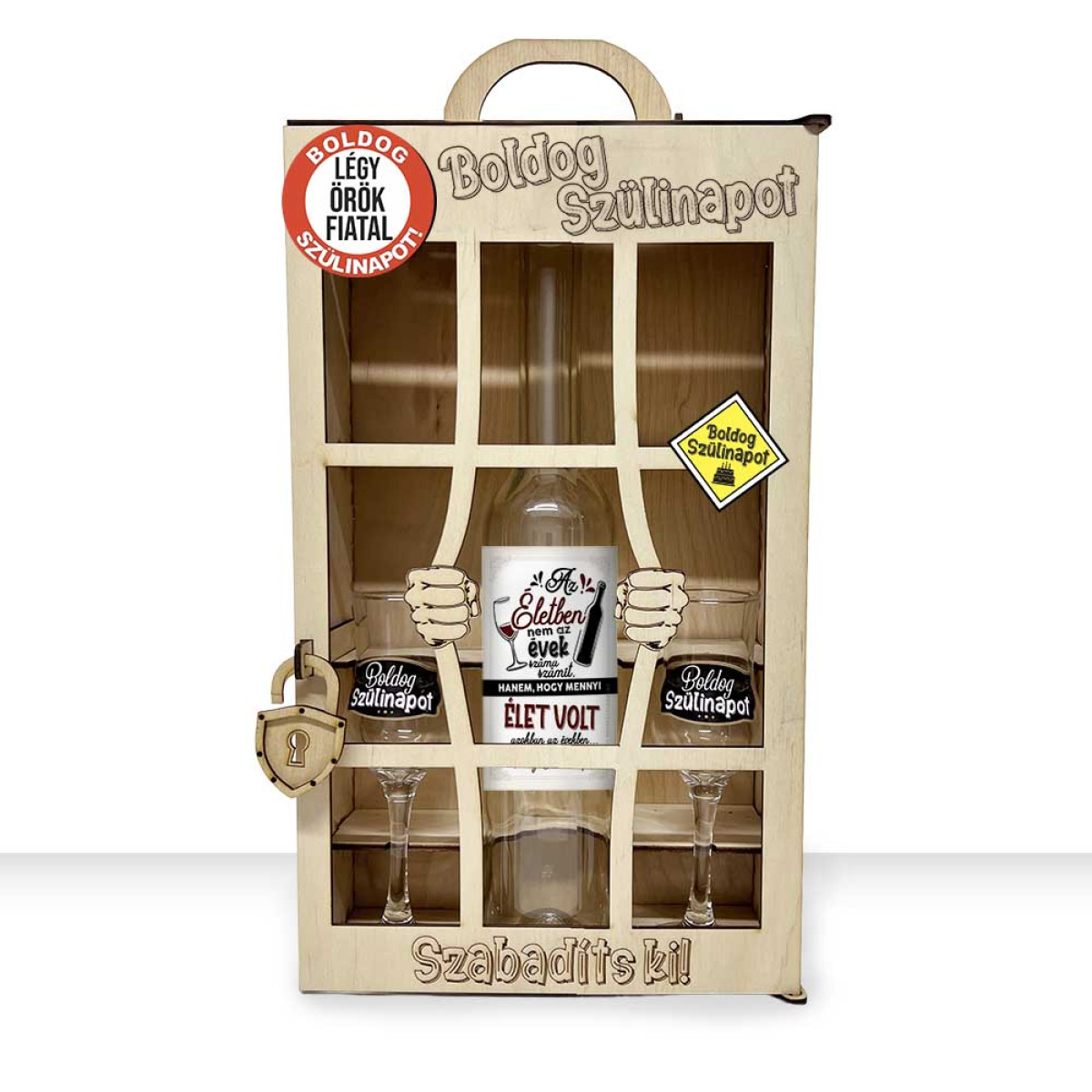 Börtönös Pálinkás Italos Szett Grappás Pohárral Születésnapi Ajándék - Az Életben Nem Az Évek Száma Számít felirattal Fa Díszdobozban