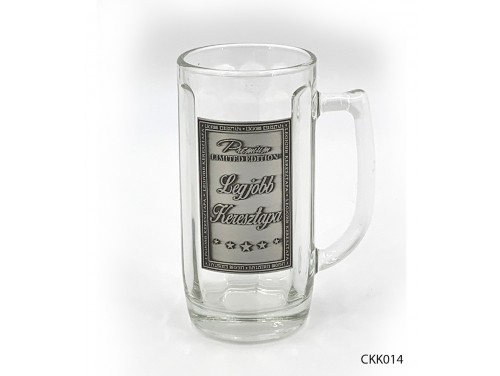 (CKK014) Fémcímkés Söröskorsó 0,3 l - Legjobb Keresztapa felirattal - Ajándék Férfiaknak, Ajándék Keresztapának