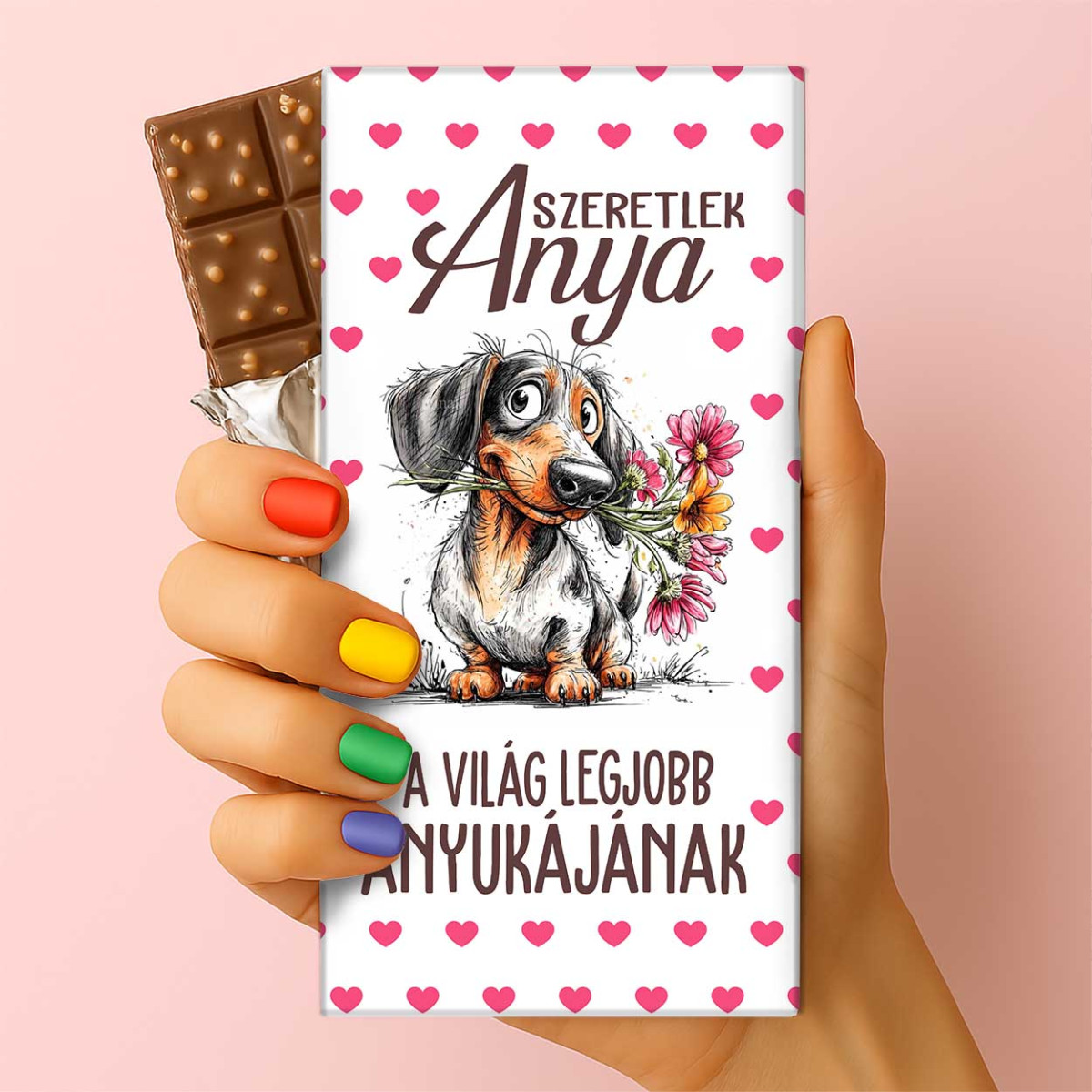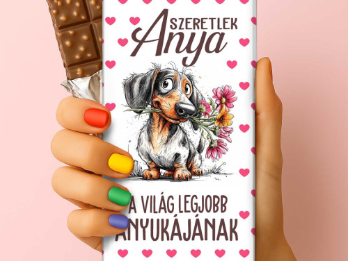 - Kutyabarát design: Az egyedi, tacskós grafika miatt ez a anyák napi csoki kitűnik a hagyományos édességek közül.