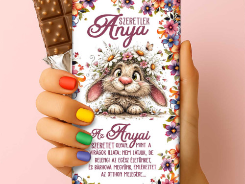 Tedd felejthetetlenné az ünnepet! Rendeld meg ezt a bájos virágos-nyuszis csokoládét édesanyádnak!