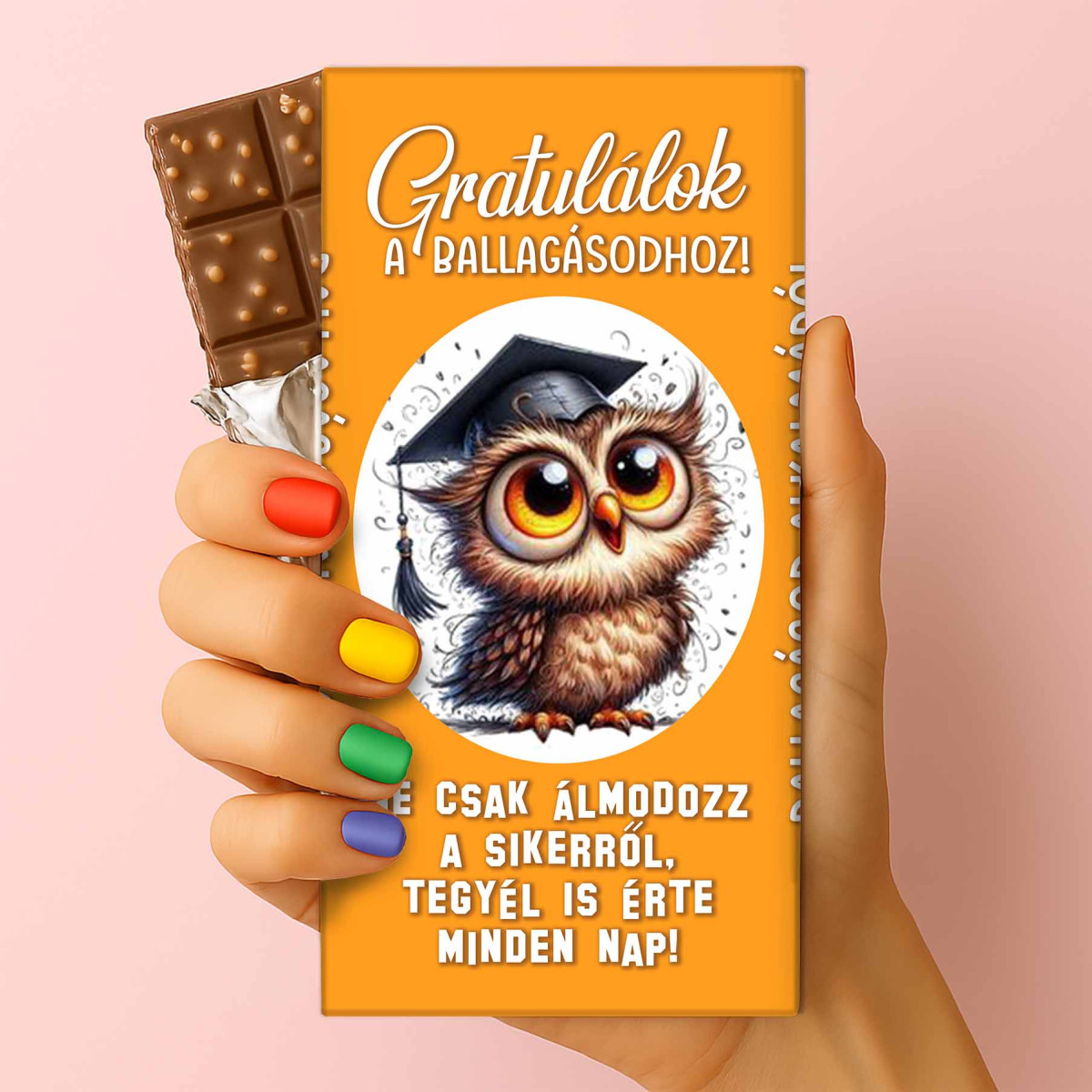 Ez a ballagási csoki kifejezetten azoknak készült, akik szeretik a mélyenszántó üzeneteket és a vidám megjelenést. Legyen szó óvodai ballagásról, középiskolai búcsúról vagy diplomaosztóról, ez az édesség a legédesebb módja annak, hogy sok sikert kívánj a következő fejezethez.