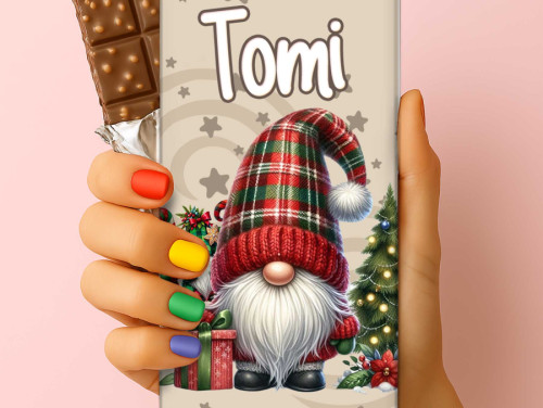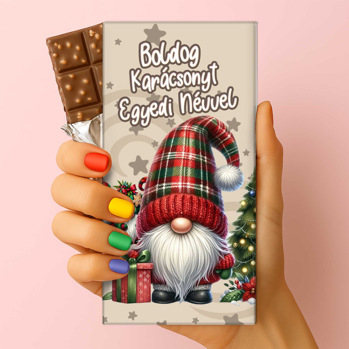 Csoda Csoki - Egyedi Feliratos Karácsonyi Csokoládé - Egyedi Felirattal Névvel Gnóme Manós - Karácsonyi Csoki - Rizses Csokoládé 75