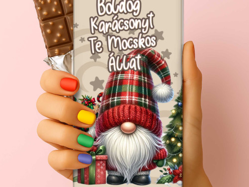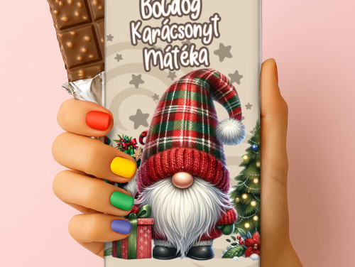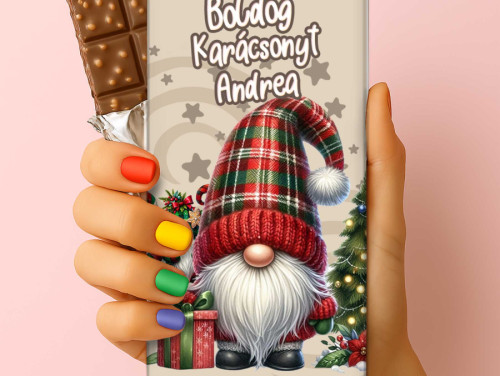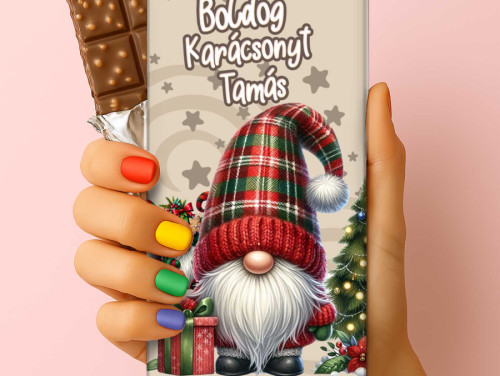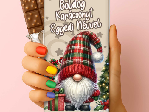 Egyedi feliratos karácsonyi csoki – névre szóló csokoládé manó mintával