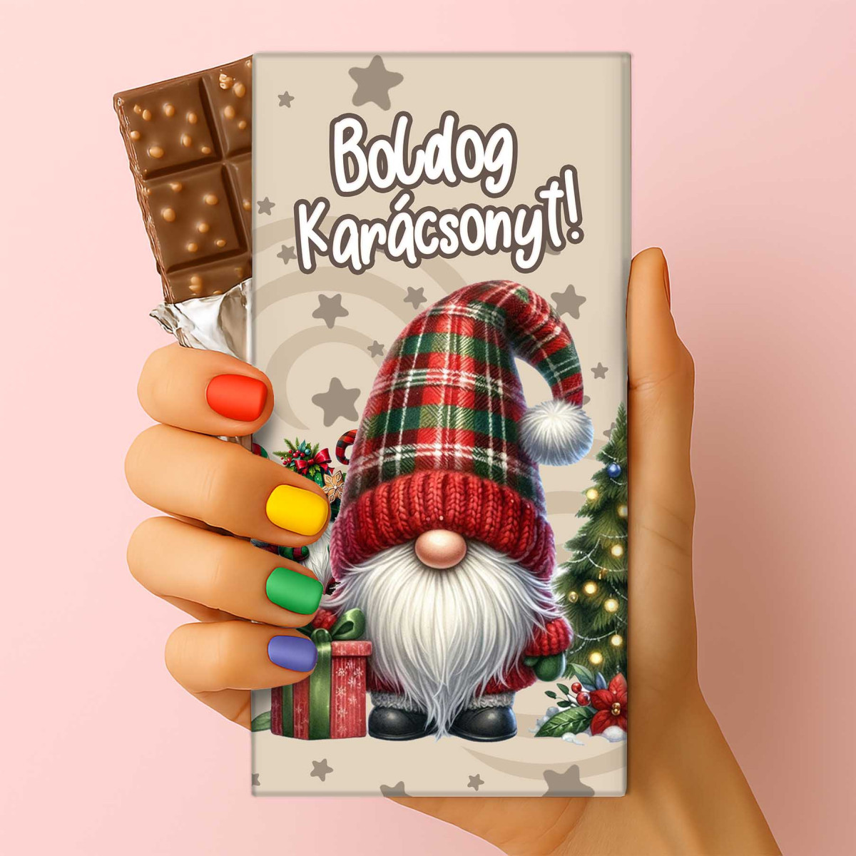 Ajándékozz mosolyt és édes pillanatokat ezzel a gnome manós karácsonyi csokoládéval, amelyen a kedves manófigura és a „Boldog Karácsonyt!” felirat gondoskodik az ünnepi hangulatról. Ideális apró ajándék kollégáknak, barátoknak, vendégeknek vagy akár céges karácsonyi csomagokba.