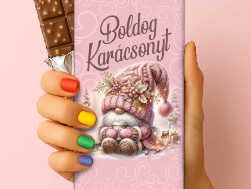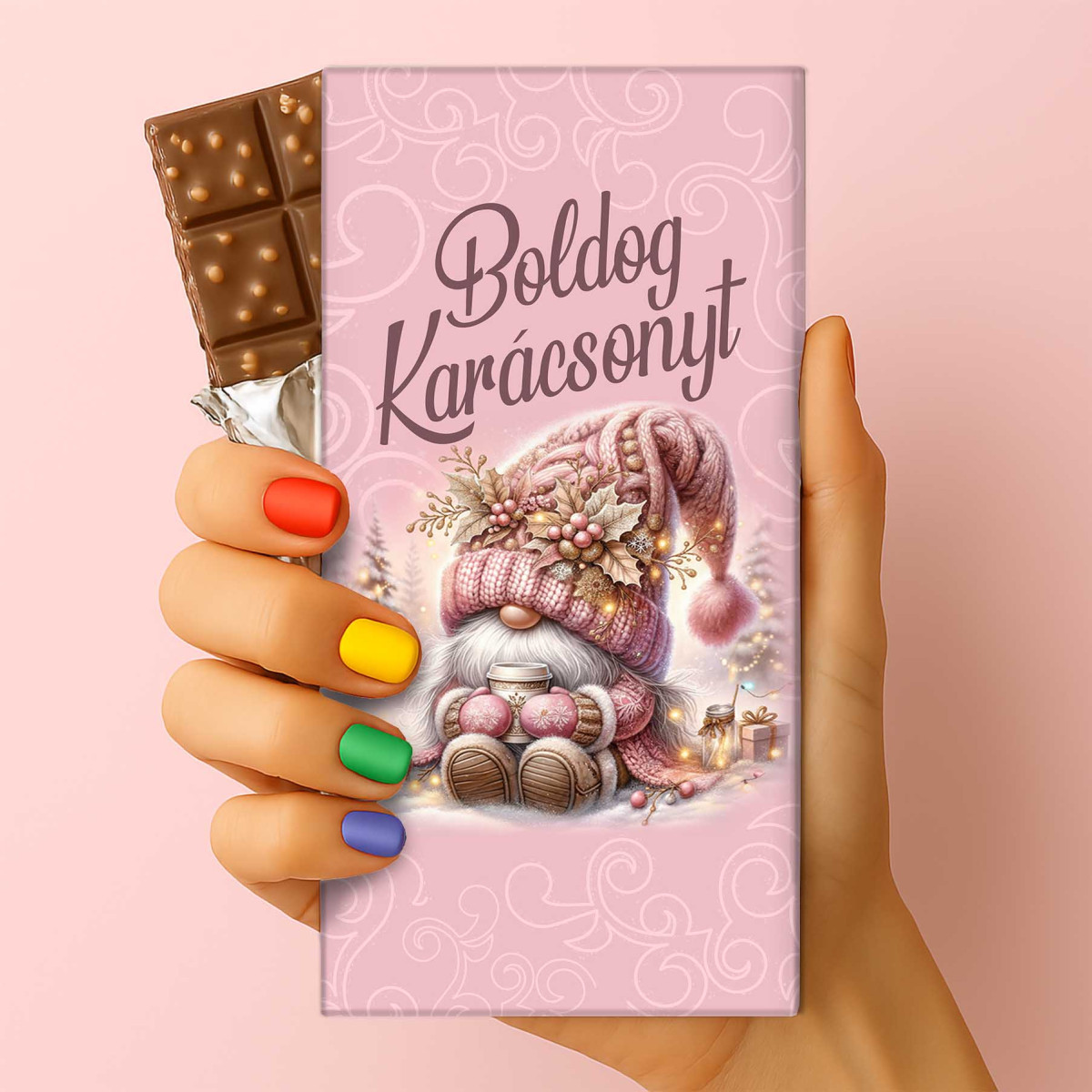 Karácsonyi Tejcsoki – Rózsaszín Gnome Manós „Boldog Karácsonyt” Csokoládé