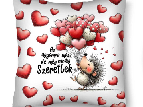 Ez a bájos „Az agyamra mész, de még mindig szeretlek” feliratú díszpárna tökéletesen ötvözi a humort és a szerelmet. A szívecskés lufikat tartó, mosolygós süni pontosan azt az érzést adja vissza, amikor valaki néha őrületbe kerget – mégis nélküle elképzelhetetlen az élet.