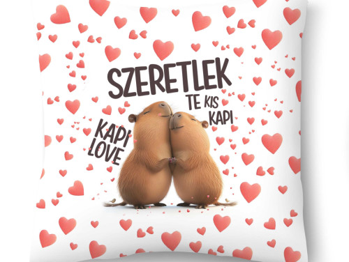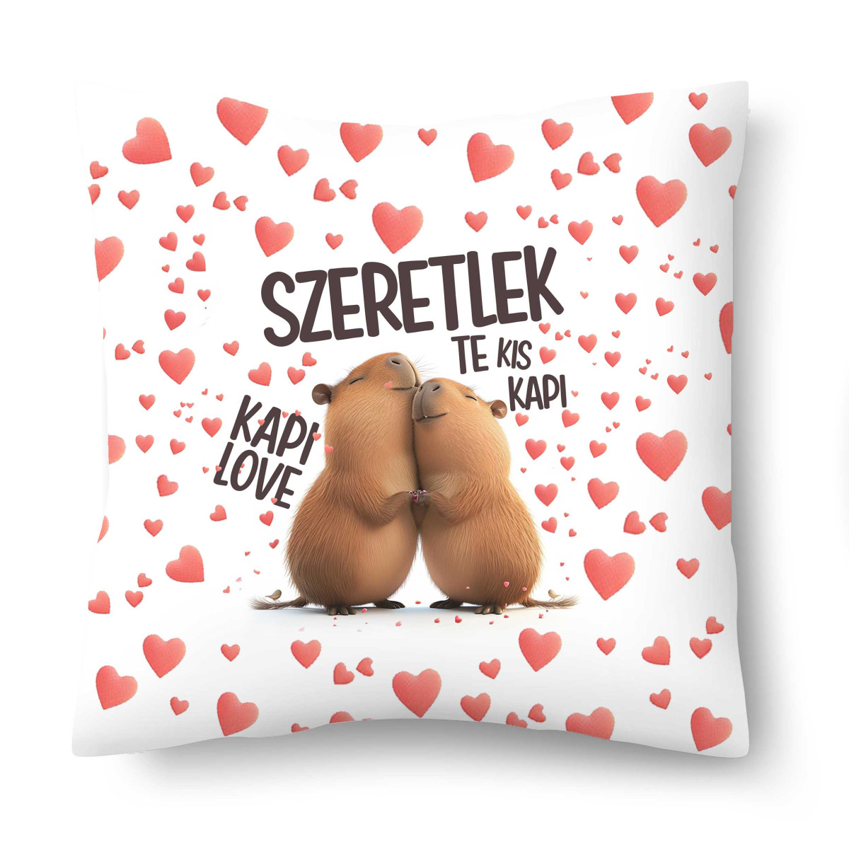 Kapibárás szerelmes díszpárna – „Szeretlek, te kis kapi!”