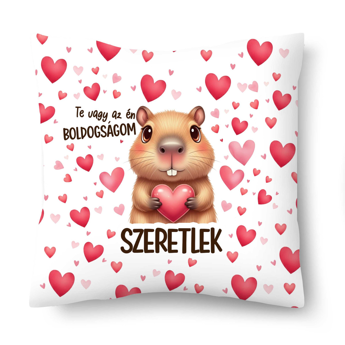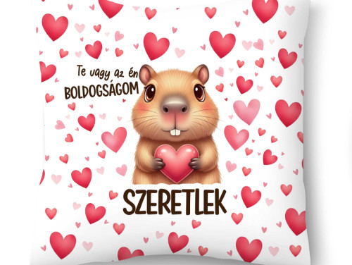 Díszpárna (26×26 cm) – „Te vagy az én boldogságom” kapibárás szerelmes párna | Valentin napi ajándék