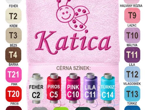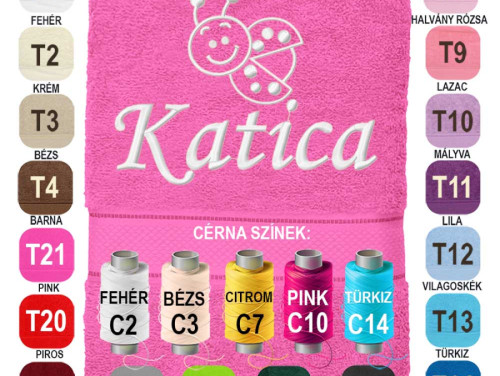 Egyedi Hímzett Törölköző – Névvel Hímzett Katica Mintás Törölköző - Személyre Szabott Neves Ajándék