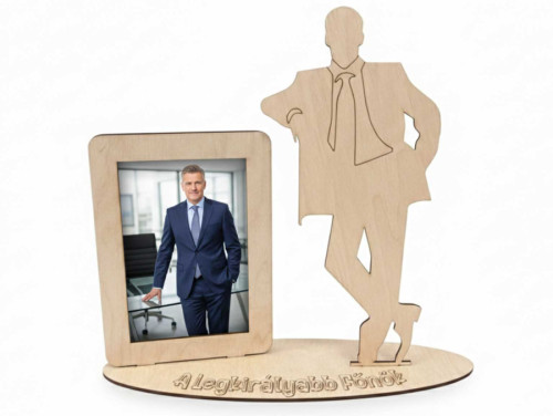Egyedi Lézerkivágott Fa Képkeret – „A Legkirályabb Főnök” Irodai Dekoráció - Ajándék Főnöknek