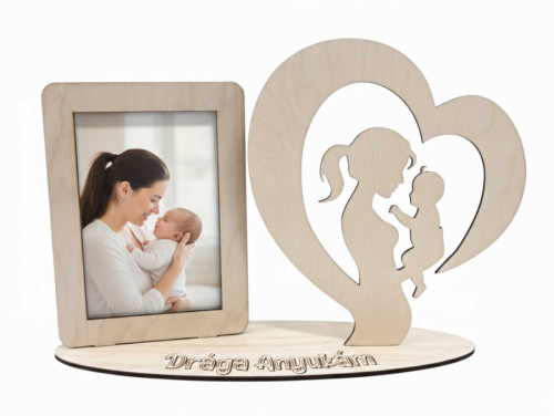 Egyedi Lézerkivágott Fa Képkeret – „Drága Anyukám” Fényképtartó Szívvel - Ajándék Anyáknak
