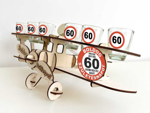 Keresed a legkreatívabb **ajándékot 60. születésnapra férfinak** vagy nőnek? Ez a **fa repülő italtartó** egyedi, humoros és figyelmes. Nem csak a buliban lesz sikeres, de a későbbiekben is a vitrin vagy a bárpult dísze maradhat, mint egy szép **emlék a 60. évfordulóról**.