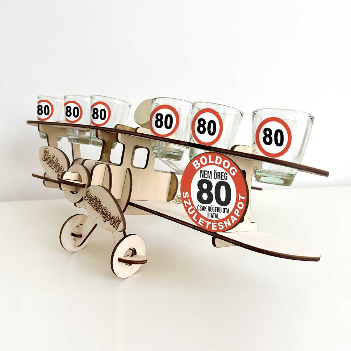 Fa Repülős Italos Szett - Boldog 80 Születésnapot - Vicces Ajándék 80. Születésnapra