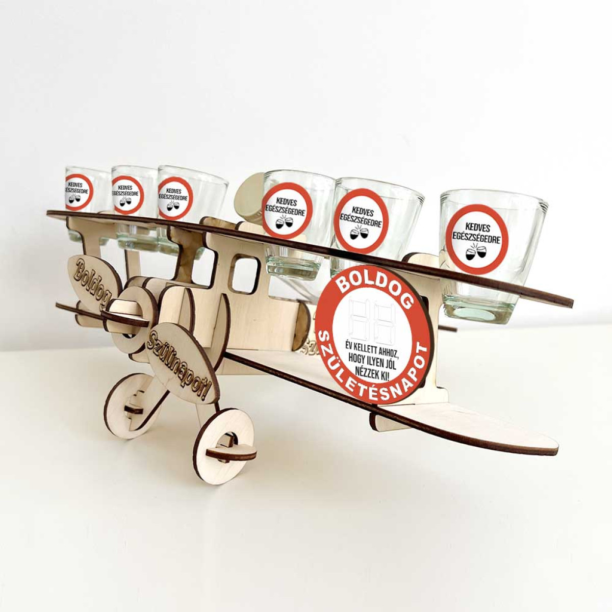 Fa Repülős Italos Szett - Személyre Szabható Boldog Születésnapot - Vicces Ajándék Születésnapra