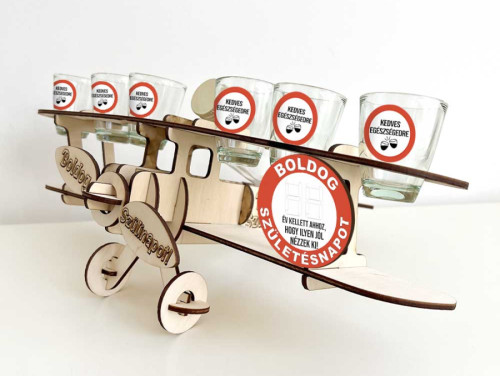✈️ Személyre Szabható Vicces Ajándék: Natur Fa Repülő Italos Szett 6 Felessel
