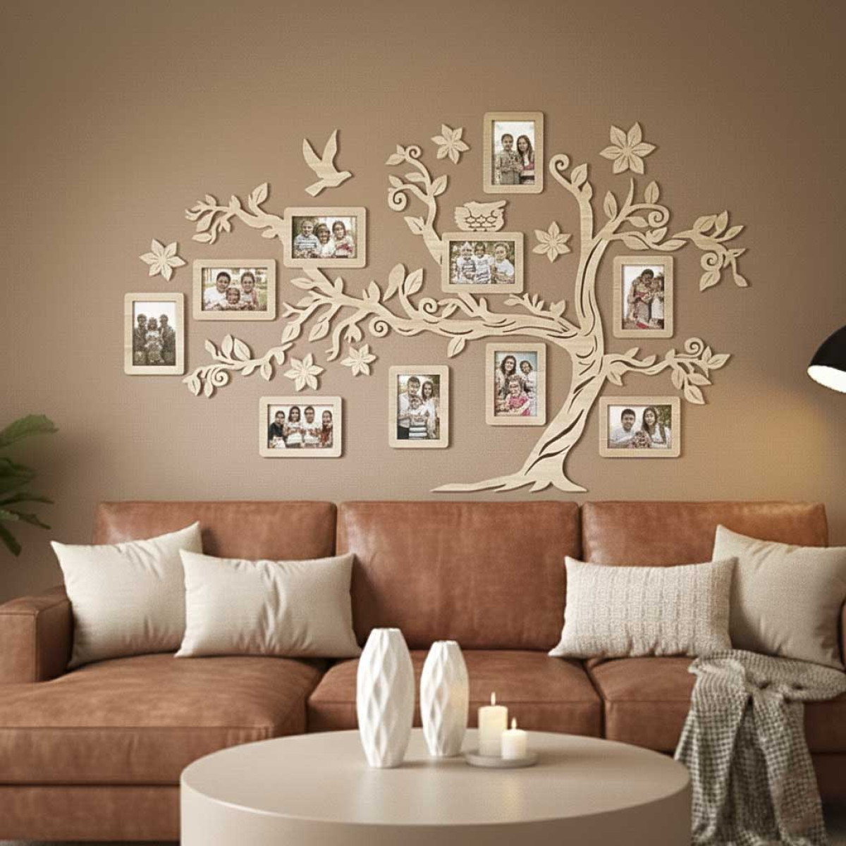 Fali Fa Családfa 10 db Képkerettel 127x78 - Naturafa - Egyedi Ajándék, Családfa Otthon Dekoráció