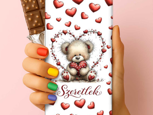 Ha egy igazán klasszikus, mégis megható szerelmes ajándékot keresel, ez a „Szeretlek” feliratú csokoládé tökéletes választás. Az aranyos, szívecskét ölelő maci minden pillantással szeretetet közvetít.