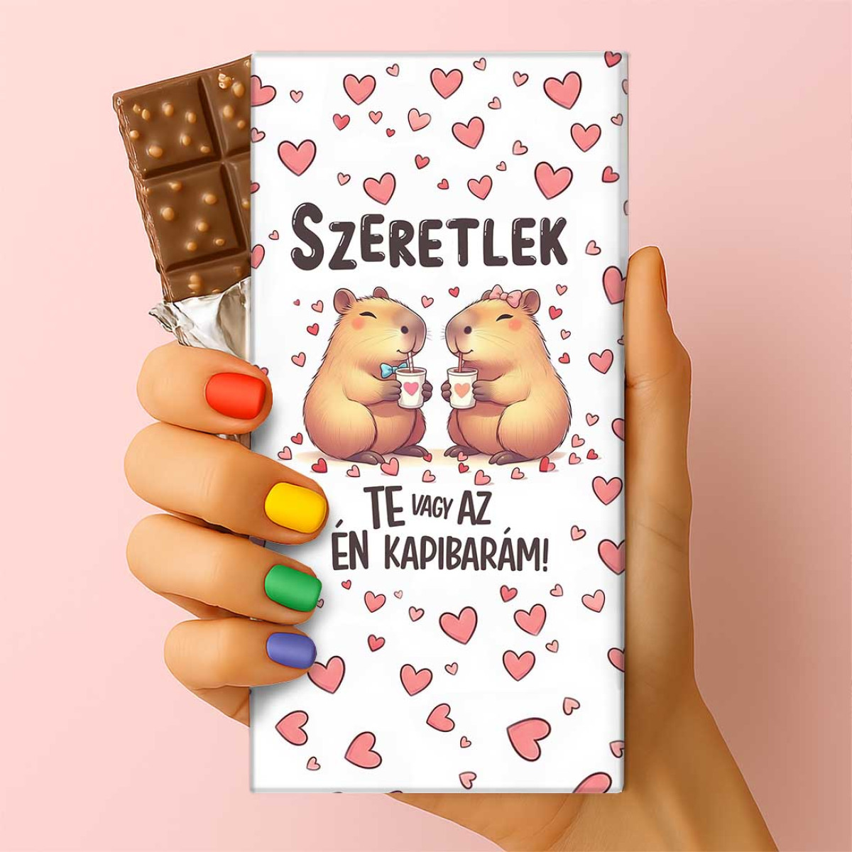 Feliratos puffasztott rizses csokoládé – „Te vagy az én kapibarám!” | Szerelmes kapibarás csoki, Valentin napi ajándék (75 g)