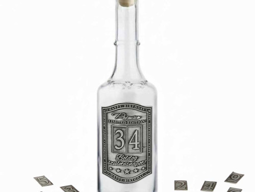 Ez a 0,3 literes, egyedi számmal rendelhető fém címkés pálinkás üveg különleges és maradandó ajándék születésnapra. A prémium megjelenésű fém hatású címkén tetszőleges életkor vagy évszám elhelyezhető, így az ajándék teljesen személyre szabható.