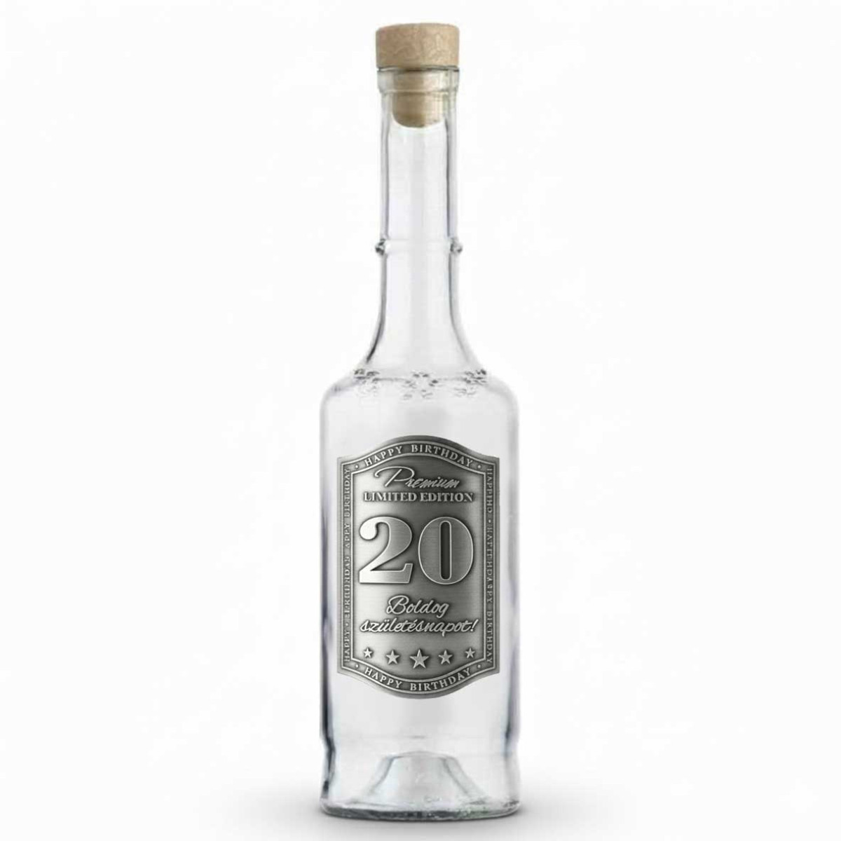 Fémcímkés Pálinkás Üveg 0,5 l - Boldog 20. Szülinapot - Szülinapi Ajándék - Ajándék 20. Születésnapra
