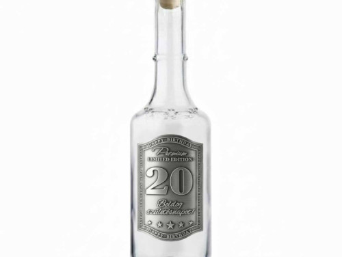 0,5 l-es fém címkés pálinkás üveg – 20. születésnapi ajándék