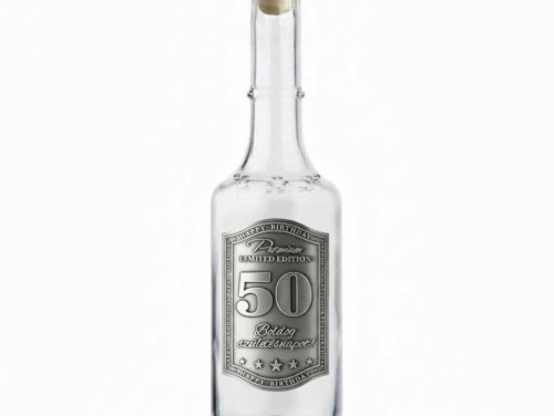0,5 l-es fém címkés pálinkás üveg – 50. születésnapi ajándék