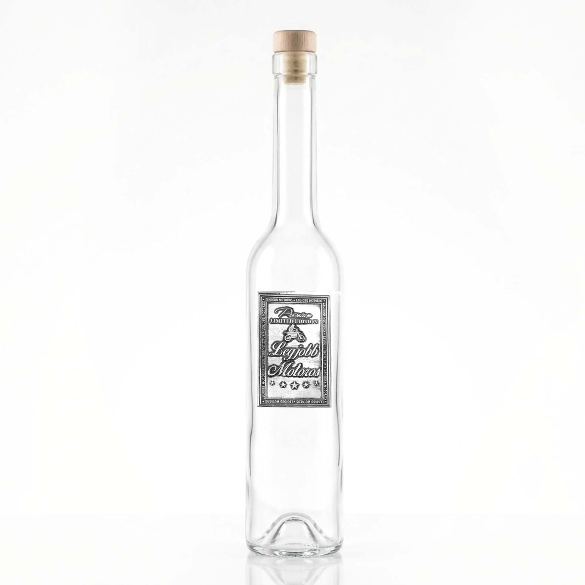 Fémcímkés Svéd Pálinkás üveg - Legjobb Motoros felirattal - Ajándék Motorosoknak