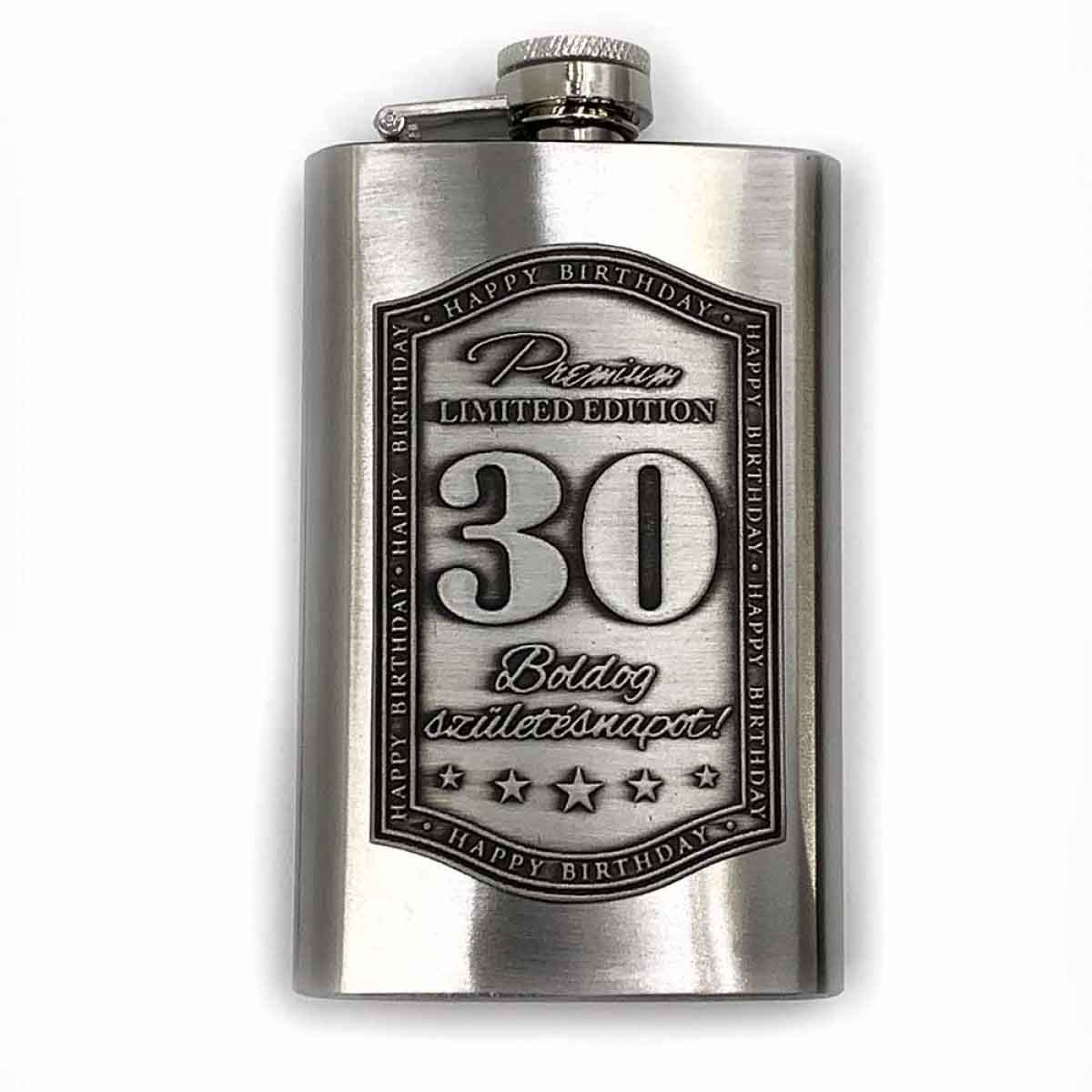 Ajándék ötlet 30. születésnapra, lepd meg barátod, szeretted, ismerősöd! Szuper választás ez a fém flaska, azaz laposüveg. Óncímke díszíti, mely vékony ónlemezből, dombornyomásos technológiával készül. Nagyszerű, egyedi, igazán megnyerő születésnapi ajándék, ha valami eredetit szeretnél! Az öröm nem marad el!
