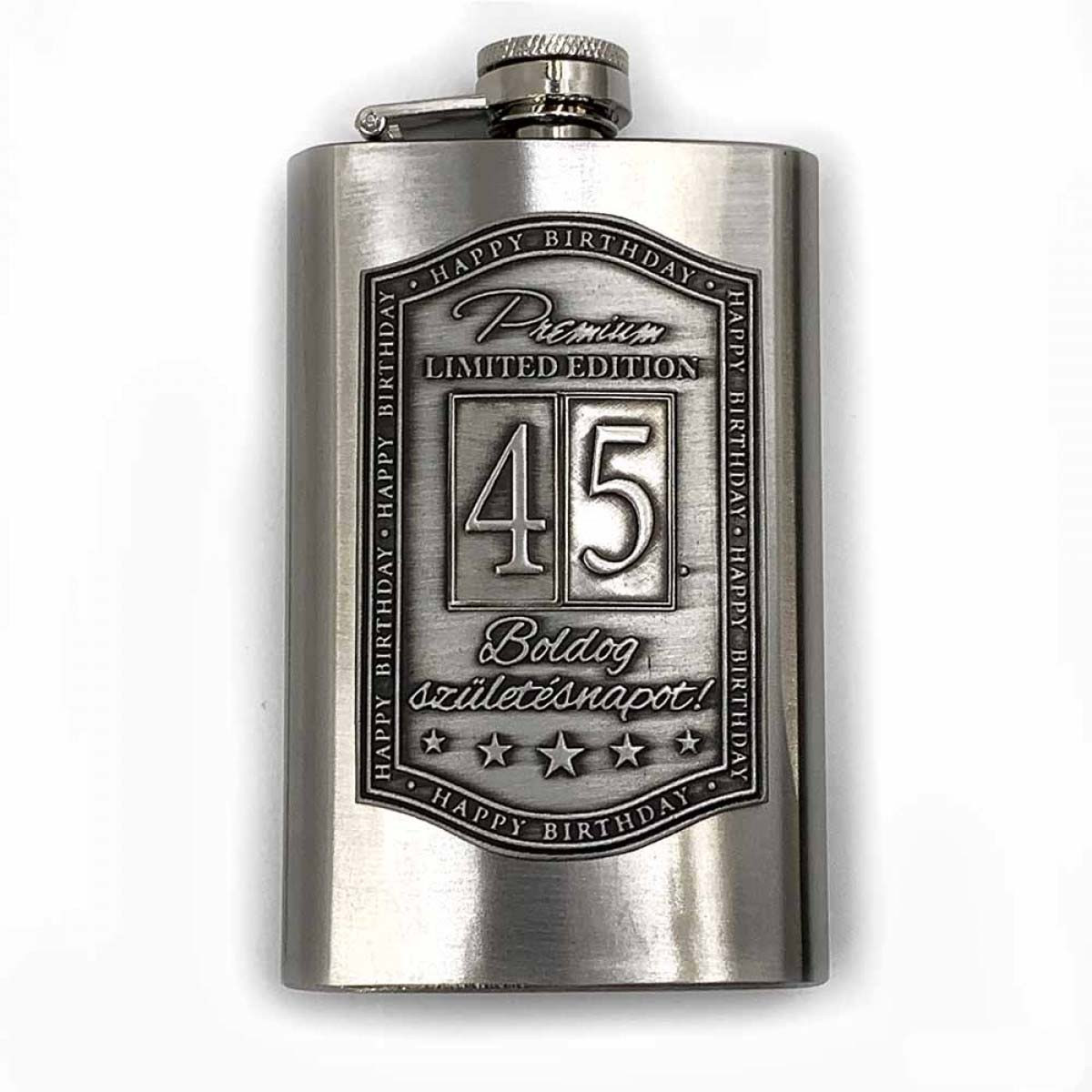 (FL035) Óncímkés flaska laposüveg - 45. Boldog Születésnapot - Keretes - Szülinapi Ajándék