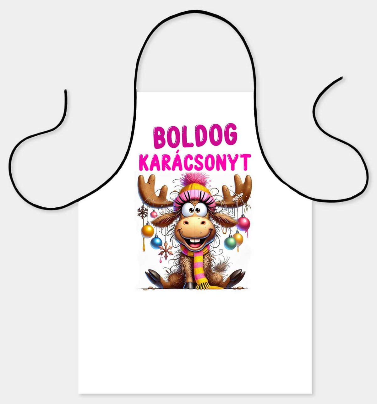 Boldog Karácsonyt Feliratú karácsonyi kötény – Vidám rénszarvas mintával