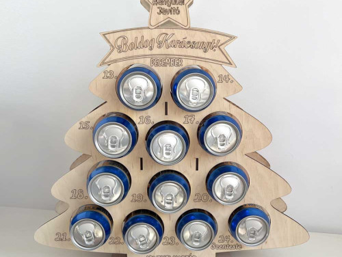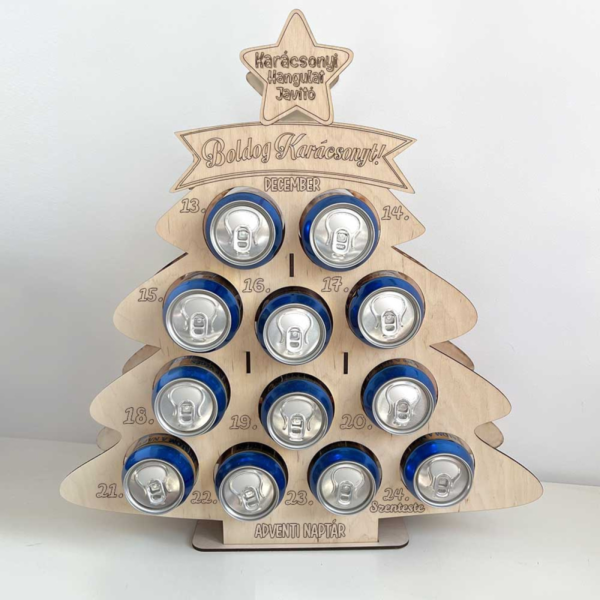 Ha egy igazán vicces karácsonyi ajándékot keresel, amivel feldobhatod az ünnepi hangulatot, akkor a Karácsonyi Sörös Adventi Naptár Fából „Karácsonyi Hangulatjavító” felirattal a legjobb választás! Ez a karácsonyfa formájú adventi kalendárium 12 doboz sörnek vagy más kedvenc italnak ad helyet, így december 13–24. között minden napra jut egy vidám meglepetés.