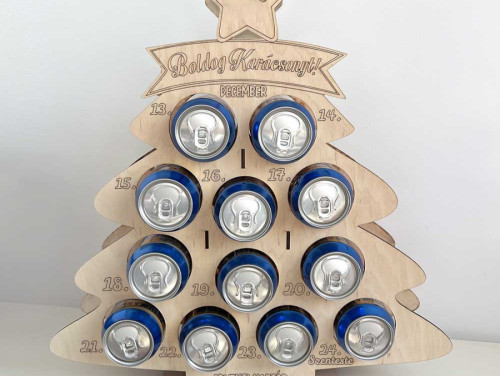 Karácsonyi Sörös Adventi Naptár Fából - "Kolléga" felirattal - 12 Dobozos Sörtartó - Karácsonyi Ajándék Kollégának