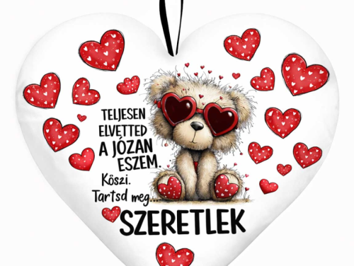 Ez a szív alakú párna tökéletes választás, ha egy vicces, mégis őszintén szeretetteljes ajándékot keresel. A napszemüveges maci és a humoros felirat garantáltan mosolyt csal a megajándékozott arcára.