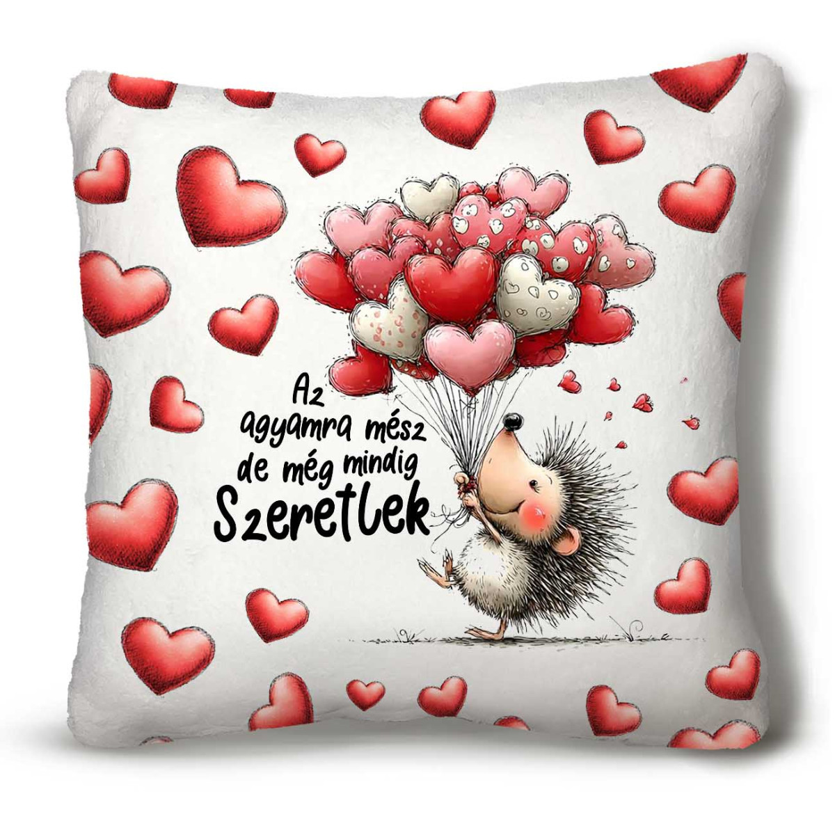 Nagy Négyzet Plüss Párna 45 x45 cm – Az agyamra mész, de szeretlek” sünis plüss párna - Valentin-napi ajándék plüss párna
